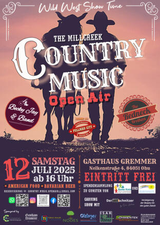 Zum ersten Mal findet dieses Jahr das MILLCREEK COUNTRY MUSIC - Open Air im wunderschönen Garten des Gasthauses Gremmer in Ohu statt.