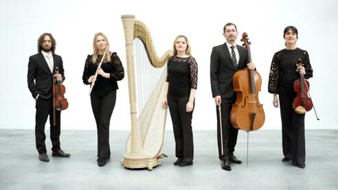Die Musiker a. Pechytiak, J. S. Engelhardt, G. Pluhar, D. Seron und S. Mirabella zeigen Stücke von Haydn, Mozart, Schubert, Pillois und Stahl.