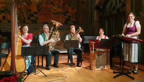 Seit 25 Jahren spielt die Familienmusik Augenstein aus Grafing in verschiedenen Besetzungen zusammen. Mit Hackbrett, Harfe, Tenorhorn und Tuba ergeben sich reizvolle Klangzusammenstellungen.