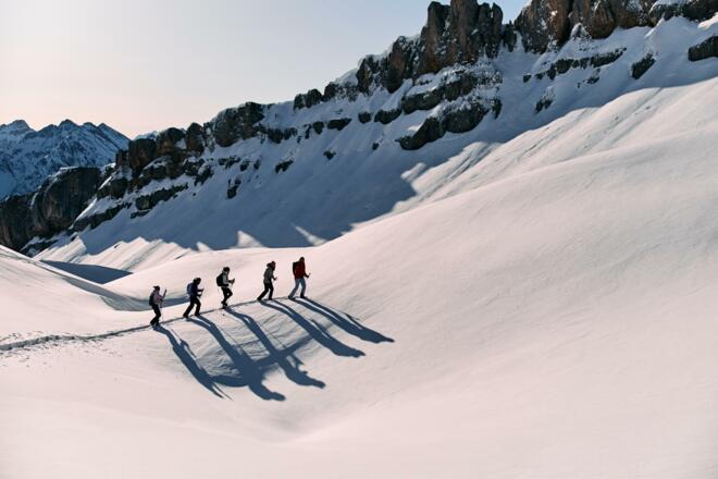 Ausrüstung: Stabile, knöchelhohe Schuhe (Bergschuhe) oder Wanderschuhe, Winterbekleidung und Rucksack mit etwas Proviant. Schneeschuhe und Stöcke sowie LVS-Gerät werden von der Bergschule gestellt.