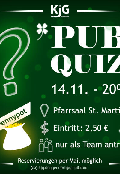 Das legendäre Pubquiz geht in die nächste Runde: Nach dem großen Erfolg der vergangenen Abende lädt die KjG Deggendorf erneut zu einem PubQuiz im bekannten Format ein.