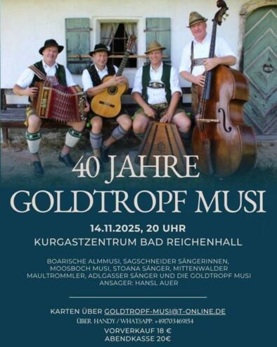 Treffen bairisch-alpenländischer Sänger und Musikanten anlässlich des Jubiläums "40 Jahre Goldtropf Musi".