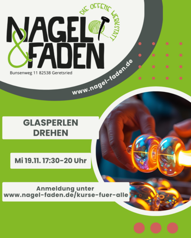 In diesem Grundkurs lernst du alles kennen, was du benötigst, um eigenständig Glasperlen drehen zu können. Du erhältst einen Einblick in die Herstellung von Glasperlen und lernst die ersten Techniken kennen. Lass dich von dem interessanten und spannenden Material Glas faszinieren.""