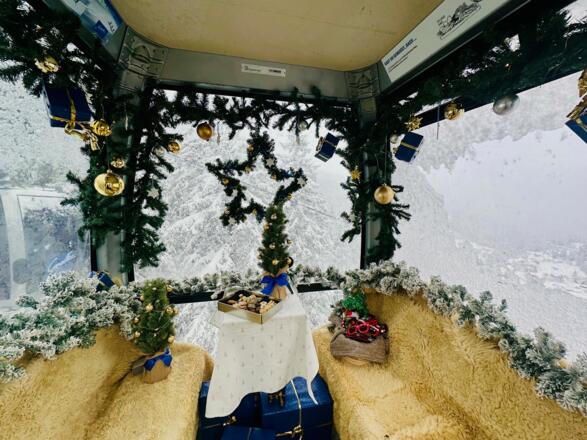 Genieße eine Fahrt in der festlich geschmückten Weihnachtsgondel in Gargellen