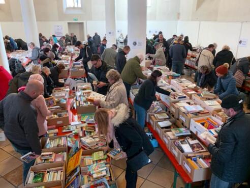 Der Lions Club Eichstätt veranstaltet einen Bücherbazar und bietet über 10.000 neue und gebrauchte Bücher nach Themen sortiert zum Verkauf an. Der Erlös wird für soziale Zwecke gespendet.