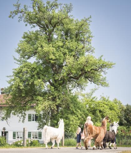 Erlebe die oberbayerische Natur mit einem Lama an der Hand.