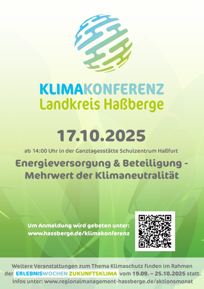 Die dritte Klimakonferenz des Landkreises Haßberge ist dem Motto: "Energieversorgung & Beteiligung - Mehrwert der Klimaneutralität" gewidmet.