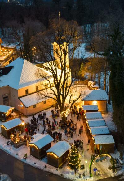 Flanieren Sie entspannt über den festlich geschmückten Weihnachtsmarkt und gustieren Sie in aller Ruhe das kulinarische Angebot, vom Schweinsbraten bis zur Superfood Bowl!