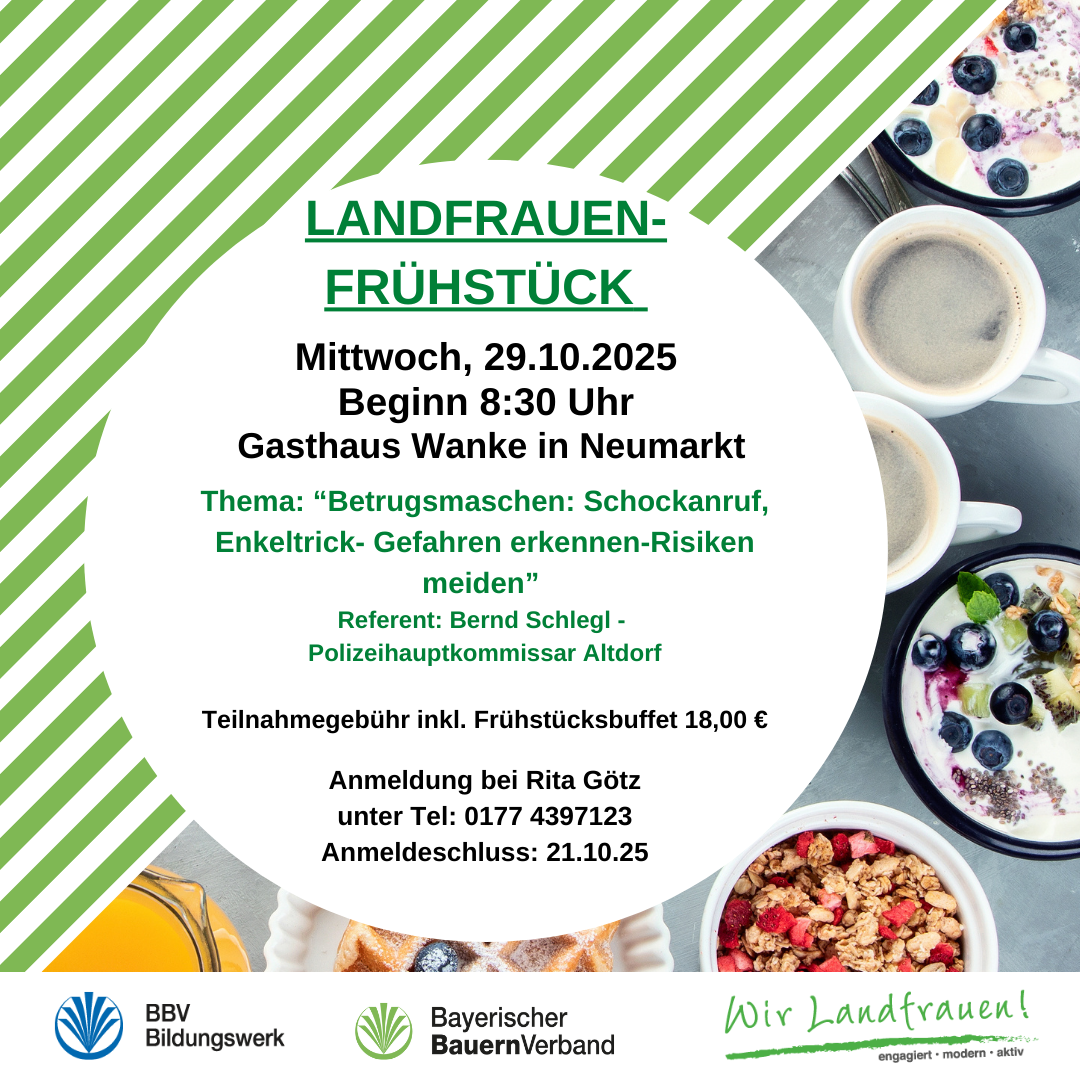 Landfrauenfrühstück mit Vortrag: "Betrugsmaschen: Schockanruf, Enkeltrick"; Gefahren erkennen – Risiken vermeiden