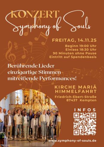 Am Freitag, den 14. November um 19:00 Uhr, lädt der Kemptener Chor „Symphony of Souls“ zu einem besonderen Konzert in die Kirche Mariä Himmelfahrt im Kemptener Stadtteil St. Mang ein.