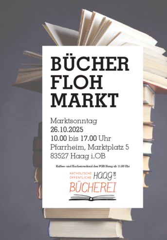 Zum Allerseelenmarkt in Haag i. OB am 26. Oktober findet auch dieses Jahr wieder der große Bücherflohmarkt der Bücherei Haag im Pfarrsaal (Marktplatz 5) statt.