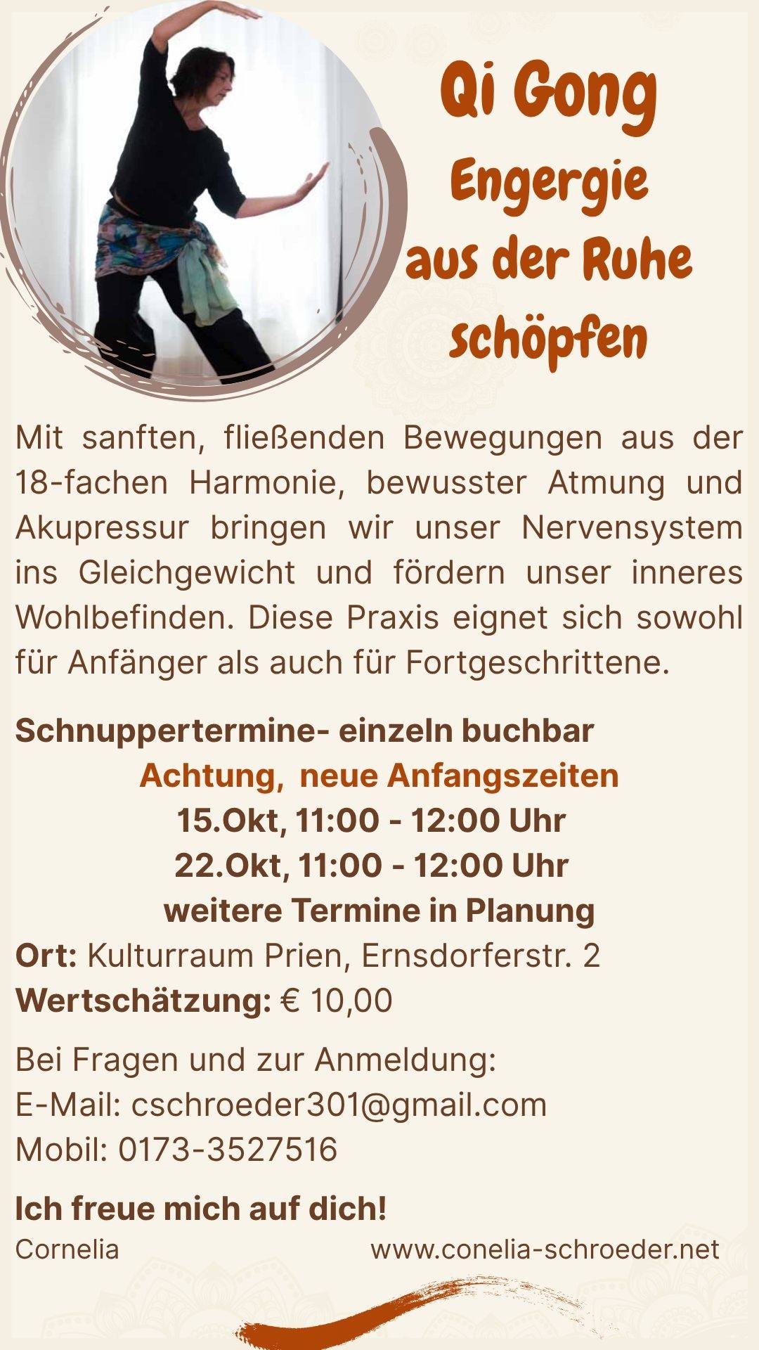 Mit sanften, fliessenden Bewegungen aus der 18-fachen Harmonie, bewussster Atmung und Akupressur bringen wir unser Nervenssystem ins Gleichgewicht und fördern unser inneres Wohlbefinden. Diese Praxis eignet sich für Anfänger und Fortgeschrittene.
