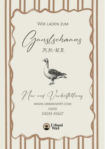 Wir laden zum Ganslschmaus von Samstag, 25. Oktober bis Sonntag, 16. November 2025.