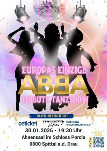 Erleben Sie die besten Hits von ABBA in einer in Europa einzigartigen Show. Von "Dancing Queen" über "Fernando", bis zu "The Winner takes it all" erwarten Sie 90 Minuten der besten Hits von ABBA. Gepaart mit beeindruckenden und faszinierenden Choreografien, authentischen Kostümen und einer unvergleichlichen Leidenschaft des Teams internationaler Profitänzer von Connecting Arts, sowie einiger beeindruckender Spezialeinlagen, garantiert diese Show einen mitreißenden, berührenden und lustigen Abend. Lassen Sie sich verzaubert und begeistern und erleben Sie mit uns das Beste von ABBA direkt vor Ihrer Haustüre.