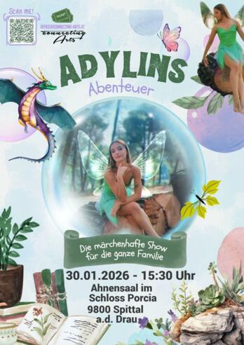 Die Waldelfe Adylin begibt sich auf eine spannende Reise und verlässt die Elfenwelt um zu erfahren, was es außerhalb dieser zu erleben gibt. Sie trifft mystische Kreaturen, lustige Superhelden, andere Fabelwesen und viele mehr. Eine spannende, lustige und berührende Show über Freundschaft, Mut, Erfahrungen und Verbundenheit, kreiert von Connecting Arts und präsentiert von einem internationalen Künstlerteam, das mit unvergleichlicher Leidenschaft und Freude Kinder und Familien mitreißt und begeistert.