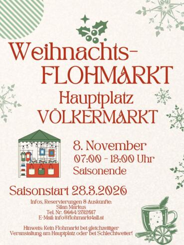 Entdecken Sie bunte Marktstände, nostalgische Raritäten, liebevolle Handarbeiten und echte Flohmarkt-Schnäppchen aller Art. Genießen Sie die festliche Atmosphäre bei einer Tasse Glühwein und frischen Maroni – hier ist für jeden etwas dabei.