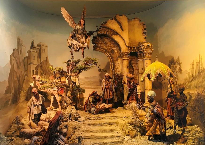 Ein besonderes Highlight sind die Krippenfiguren: Sie stammen aus der Werkstatt der sizilianischen Künstlerin Angela Tripi aus Palermo. Jedes Stück ist ein handgefertigtes Unikat – aus Ton modelliert, gebrannt, bemalt und mit leimgetränkten Stoffen sorgfältig bekleidet.