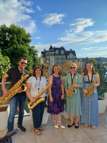 Am umgedrehten Tag der offenen Tür gehen alle Musiker:innen in den Ort und spielen im Kurpark Velden.