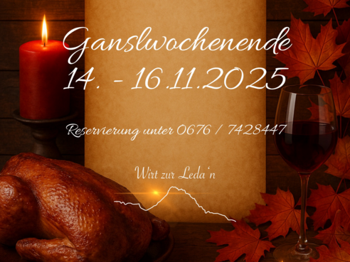 Genießen Sie ein herbstliches Ganslwochenende voller Genuss, Gemütlichkeit und traditioneller Schmankerl – reservieren Sie jetzt Ihren Platz für ein kulinarisches Highlight!