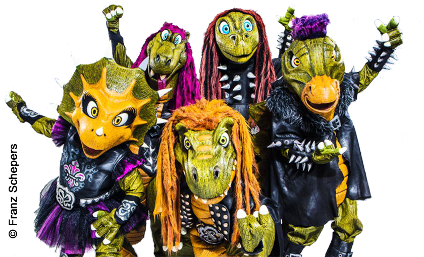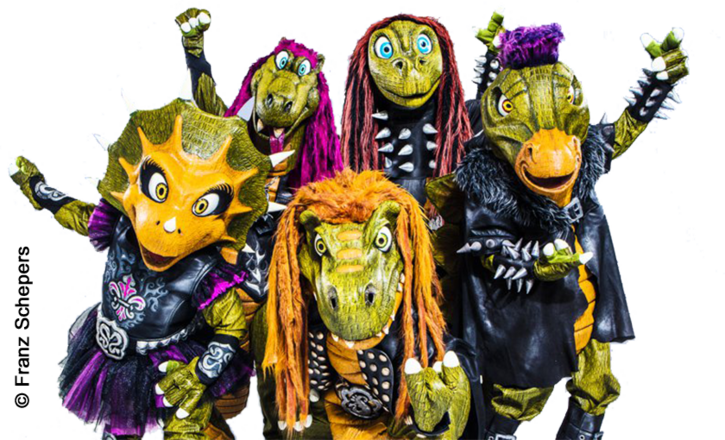 Heavysaurus-Konzerte sind spektakulär: Licht, Nebel, Luftballons, Konfetti und echte Livemusik von Profis in Dino-Kostümen. Wo Heavysaurus spielen, wackeln Köpfe und leuchten Kinderaugen. 1 Euro pro Ticket geht an “Die Arche” - für Kinder, die Unterstützung brauchen.