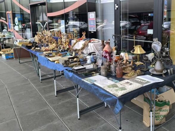Der Flohmarkt umfasst eine vielfältige Auswahl an schönen Antiquitäten, darunter Bilder, Porzellan, Gläser, Jagdtrophäen, Schnitzereien, historische bäuerliche Gebrauchsgegenstände, alte Ansichtskarten, Devotionalien sowie zahlreiche Alltagsgegenstände.