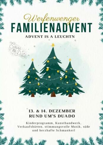 Beim Werfenwenger Familienadvent rund um´s DUADO erwartet dich buntes Kinderprogramm, Kunsthandwerk, Verkaufshütten, stimmungsvolle Musik und herzhafte Schmankerl.