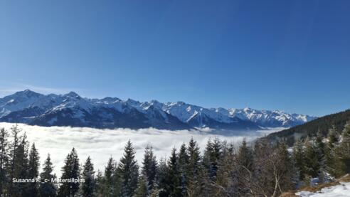 Nach dem Anlegen der Schneeschuhe gehen wir neben der Piste im freien Gelände gleich steil bergauf bis zu einem Schiweg. Hier genießen wir die Aussicht bevor wir auf dem Schiweg durch den tiefverschneiten Wald bis zu einem kleinen Naturbiotop kommen. Nach einer kleinen Pause wandern wir auf einem Waldweg bergauf zur Moseralm und neben der Piste weiter zum Resterkogel. Beim Gipfelkreuz bewundern wir die traumhafte Aussicht zu den 3000er der Hohen Tauern sowie den Blick ins Tal. Zur Belohnung unserer Tour kehren wir beim Pinzgablick ein und stärken uns bei heimischen Schmankerln. Mit einer fast durchgehend wunderschönen Aussicht übers Tal wandern wir auf einem Forstweg wieder retour.