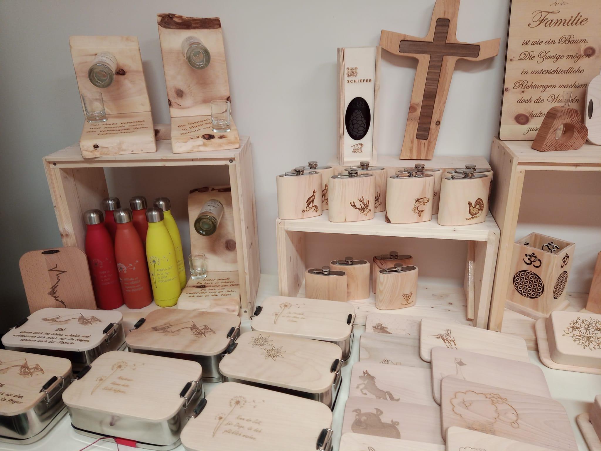 Zu sehen gibt's Bienenwachskerzen, Zirbenholzprodukte, Christbaumanhänger, Kosmetikartikel, Edelbrände, Krippen und vieles mehr!