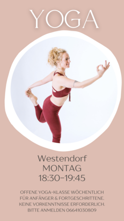 Offene Yoga-Klasse jeden Montag (entfällt an Feiertagen) für Anfänger & Fortgeschrittene 18:30 BIS 19:45 UHR