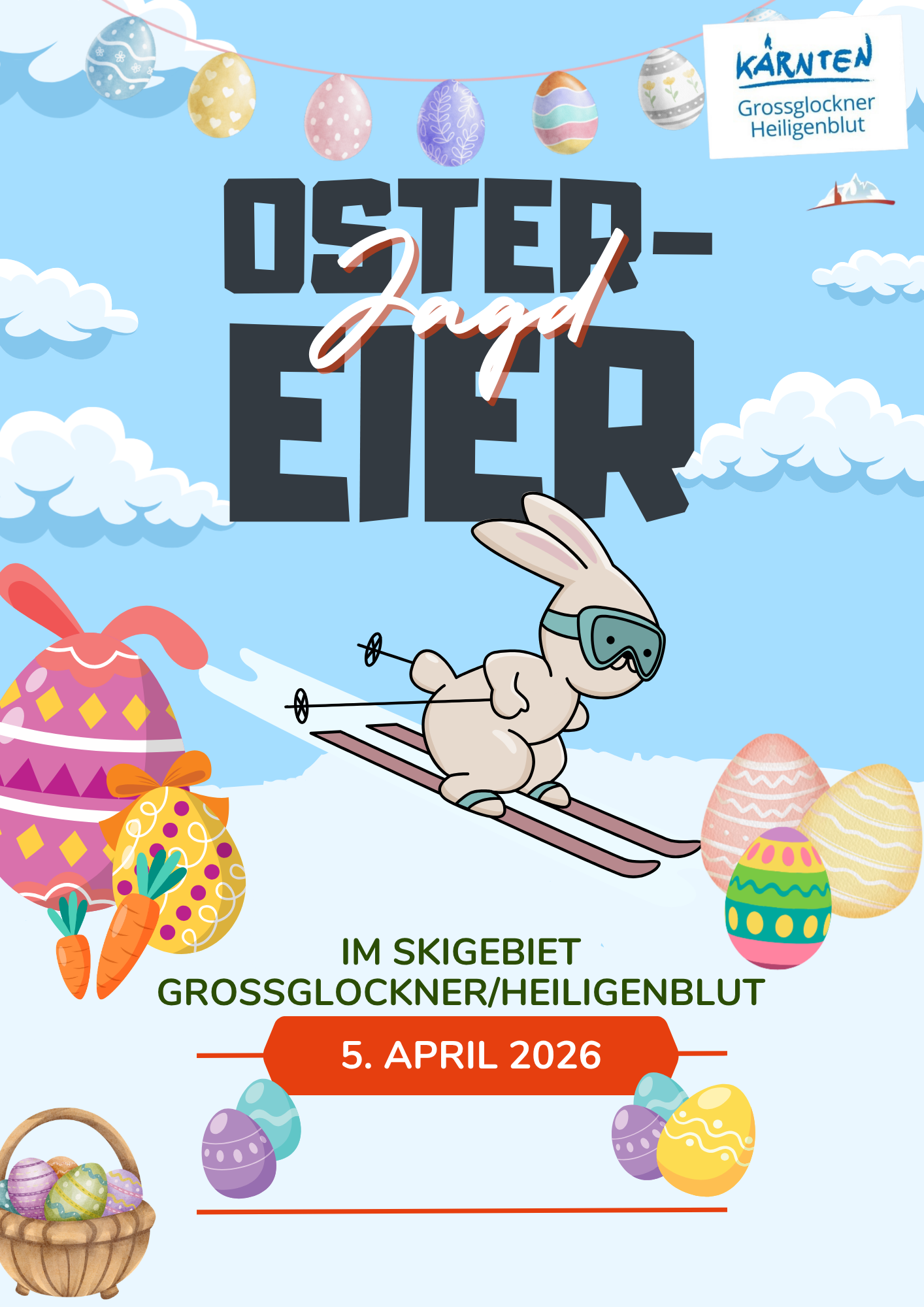 Am 05. April 2026 dürft ihr bei uns im Skigebiet auf spannende Ostereiersuche gehen. Hüpft über die Pisten, entdeckt versteckte Schätze und erlebt einen fröhlichen Tag voller Spaß, Lachen und Osterfreuden.