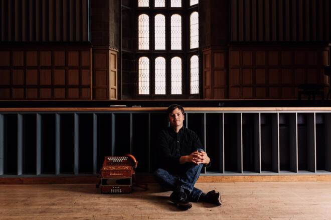 Das zweite Ensemble führt der junge, grandiose englische Akkordeon-Guru SAM MABBETT an, der seit 8 Jahren in Glasgow lebt. SAM kommt ursprünglich aus der britischen Morris Dance-Szene, erweiterte aber schon sehr jung sein keltisches Repertoire und konnte sich 2023 bis ins Finale der „BBC Radio Scotland Young Traditional Musician”-AWARDs hoch spielen. Ihm zur Seite steht einerseits die wunderbare Gitarristin/Sängerin HEATHER CARTWRIGHT aus Cumbria, ebenfalls in Glasgow hängen geblieben und sowohl als gesuchte Begleiterin als auch mit ihrer wundervollen Solo-Arbeit und eigenen Songs aus dem Lake District ein Fixstern in der schottischen Szene. Letztes Jahr gab sie den vom Publikum spektakulär gefeierten Opening Act auf der kompletten CHRIS DREVER-Tour. Für die Quintessenz in diesem Trio sorgt die Geigerin MADELEINE STEWART aus New Hampshire, die 2014 nach Glasgow zog, um am Royal Conservatoire of Scotland Musik zu studieren, was sie mit einem BMus (Hons) in Traditional Music abschloss. Auch MADELEINE erreichte 2023 das Finale der „BBC Radio Scotland Young Traditional Musician”-AWARDs und ihr eigenes Trio war für die MG Alba Scottish Music Awards nominiert. Sie gastierte mehrmals bei Festivals wie Celtic Connections oder Celtic Colours und tourte in Amerika, UK und Europa.