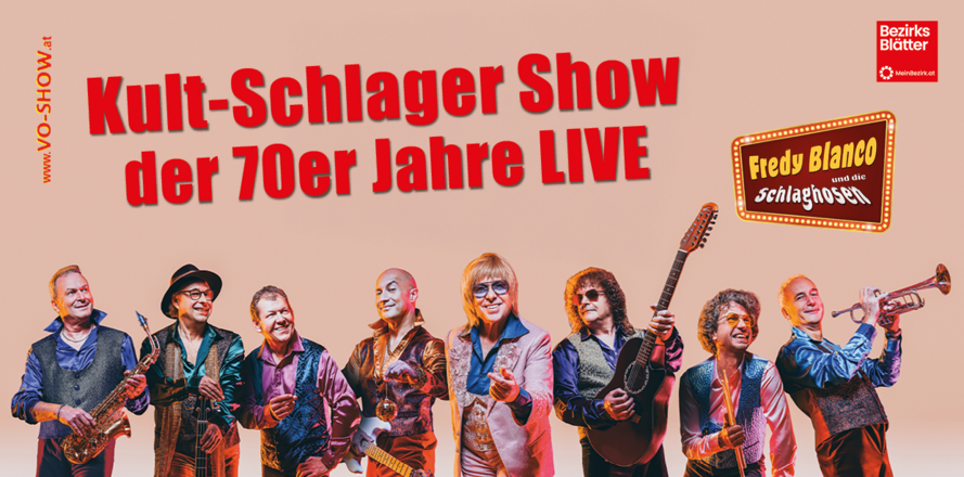 Diese Show ist nicht nur eine Hommage an die glorreichen Schlagerzeiten, sondern auch ein Spektakel, das Menschen aller Generationen verbindet. Ob Sie das Lebensgefühl der 70er selbst erlebt haben oder zum ersten mal in der Welt der Schlaghosen eintauchen: diese Band und ihr unvergleichlicher Vibe wird Sie sofort begeistern. Ein Abend mit Fredy Blanco & Schlaghosen bedeutet: unvergessliche Stimmung, gemeinsames Singen und pure Freude. Acht Vollblutmusiker, die das Lebensgefühl der 1970er selbst erlebt haben und nun an ihr Publikum weitergeben. Natürlich im standesgemäßen Outfit,