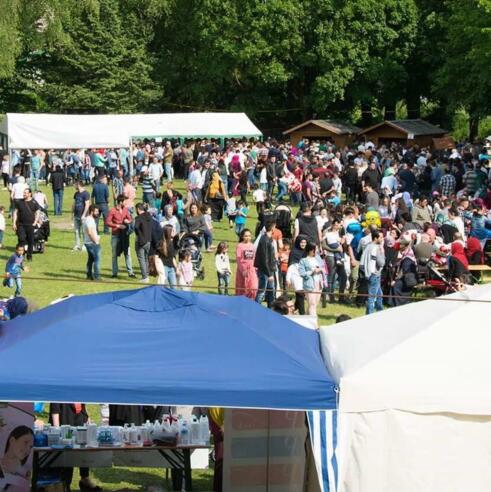 Grieskirchner Weihnachtsdorf mit Postamt und Kinderzug