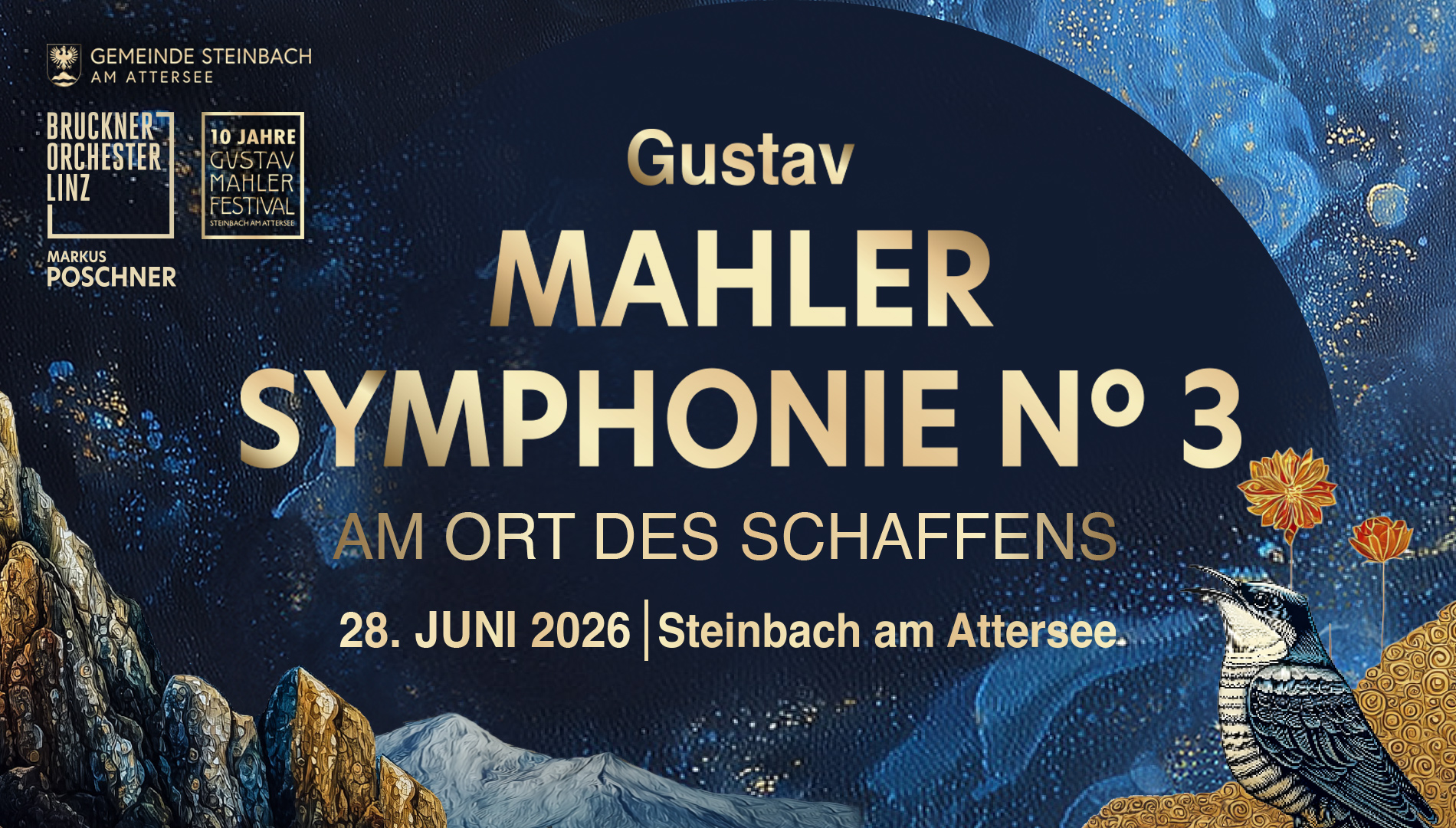 Das Gustav Mahler Festival 2026 in Steinbach am Attersee findet von 21. bis 28. Juni 2026 statt und dreht sich um die dritte Symphonie des Komponisten.