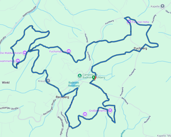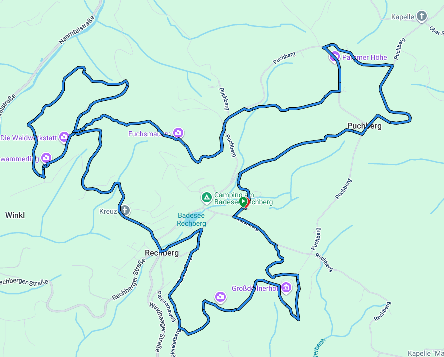 Von nun an geht es bergab – echtes Trail-Feeling kommt auf, wenn es mit Tempo Richtung Plenkerberg und weiter zum Badesee geht. Über den Promenadenweg führt der Weg bis zur Pfarrkirche Rechberg. Ein kurzes Asphaltstück lädt zum Durchatmen ein, bevor es weiter in die Ortschaft Winkl geht.
