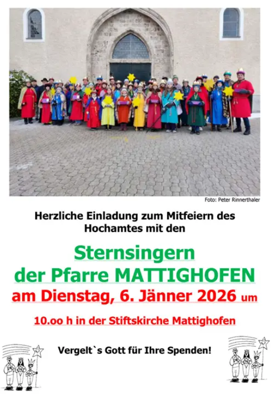 Herzliche Einladung zum Mitfeiern des Hochamtes mit den Sternsingern der Pfarre Mattighofen