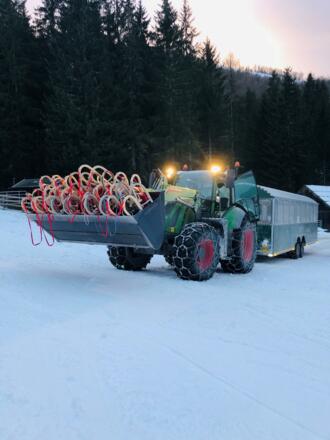 Auffahrt und Rückfahrt mit dem Traktortaxi