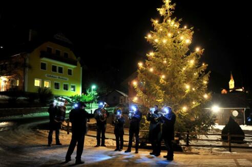 Stimmungsvolles Adventblasen an verschiedenen Plätzen im Ortsgebiet von Lessach.