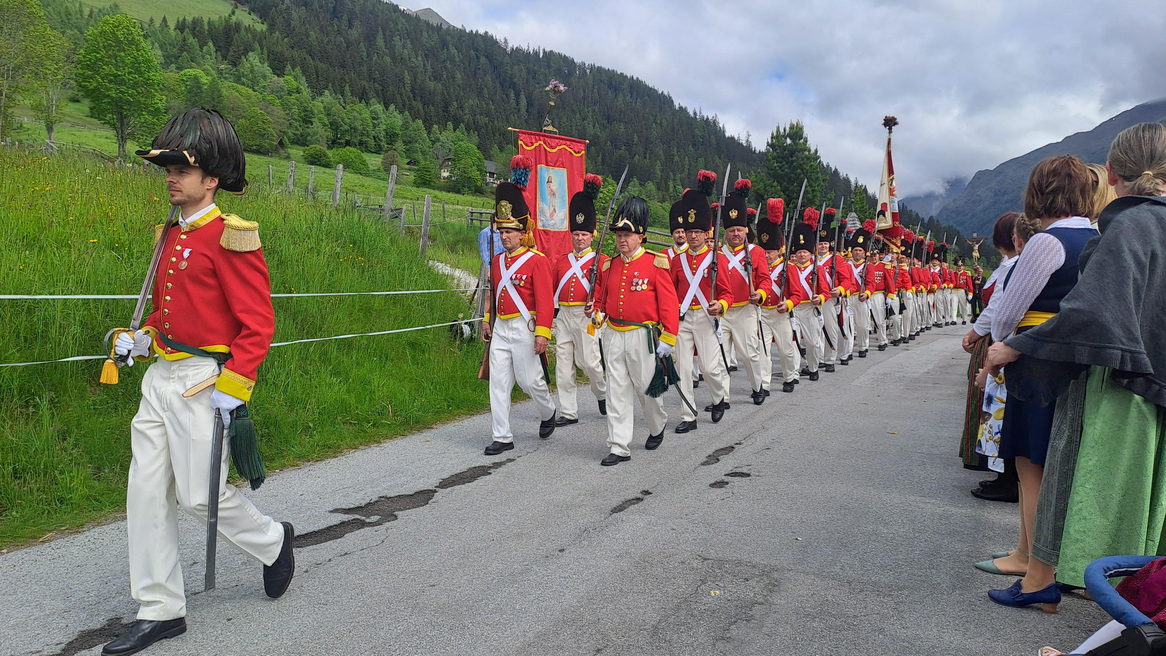 Kirchgang der Historischen Schützenkompanie Lessach zu Ehren der Kirchenpatronen Hl. Peter und Hl. Paul.