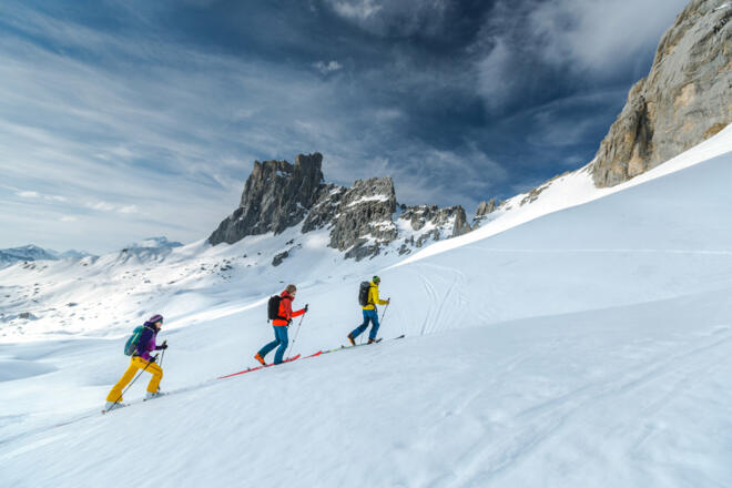 Die faszinierende Bergwelt der Silvretta, des Rätikon und des Verwall bietet ideale Voraussetzungen für ausgedehnte Skitourentage im Montafon. Dieses Angebot richtet sich an fortgeschrittene Skitourengeherinnen und Skitourengeher. Die Bandbreite reicht von Skitourenzielen mit etwa 700 Höhenmetern im Aufstieg bis hin zu Ski-3000ern und kleinen Durchquerungen. Dich erwartet eine hochalpine Landschaft mit schroffen Gipfeln und weiten Skihängen.