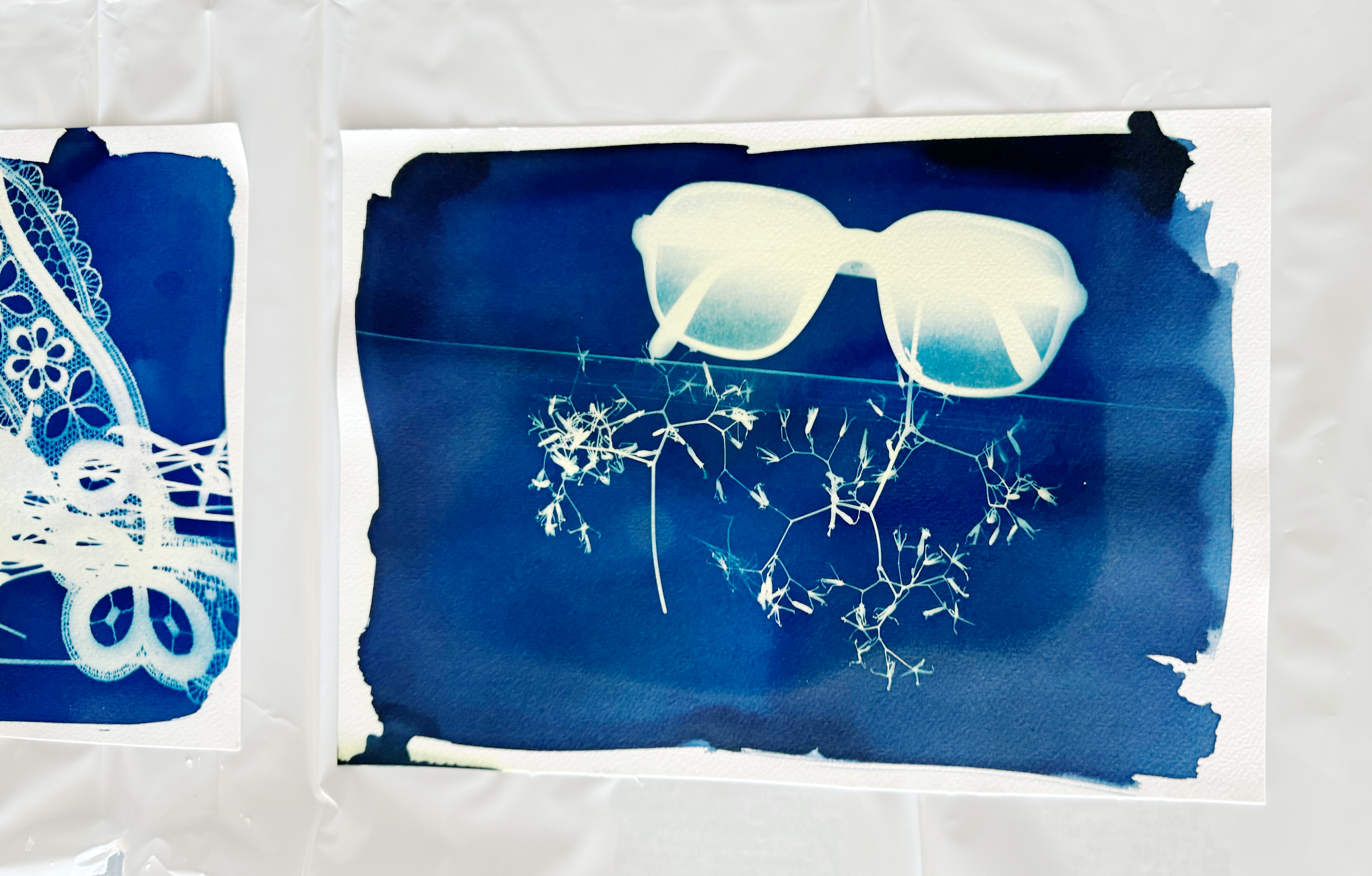 Im Rahmen des Workshops erhalten die Teilnehmerinnen und Teilnehmer Informationen zur Geschichte der Cyanotypie und haben die Möglichkeit, verschiedene Bildträger zu belichten.