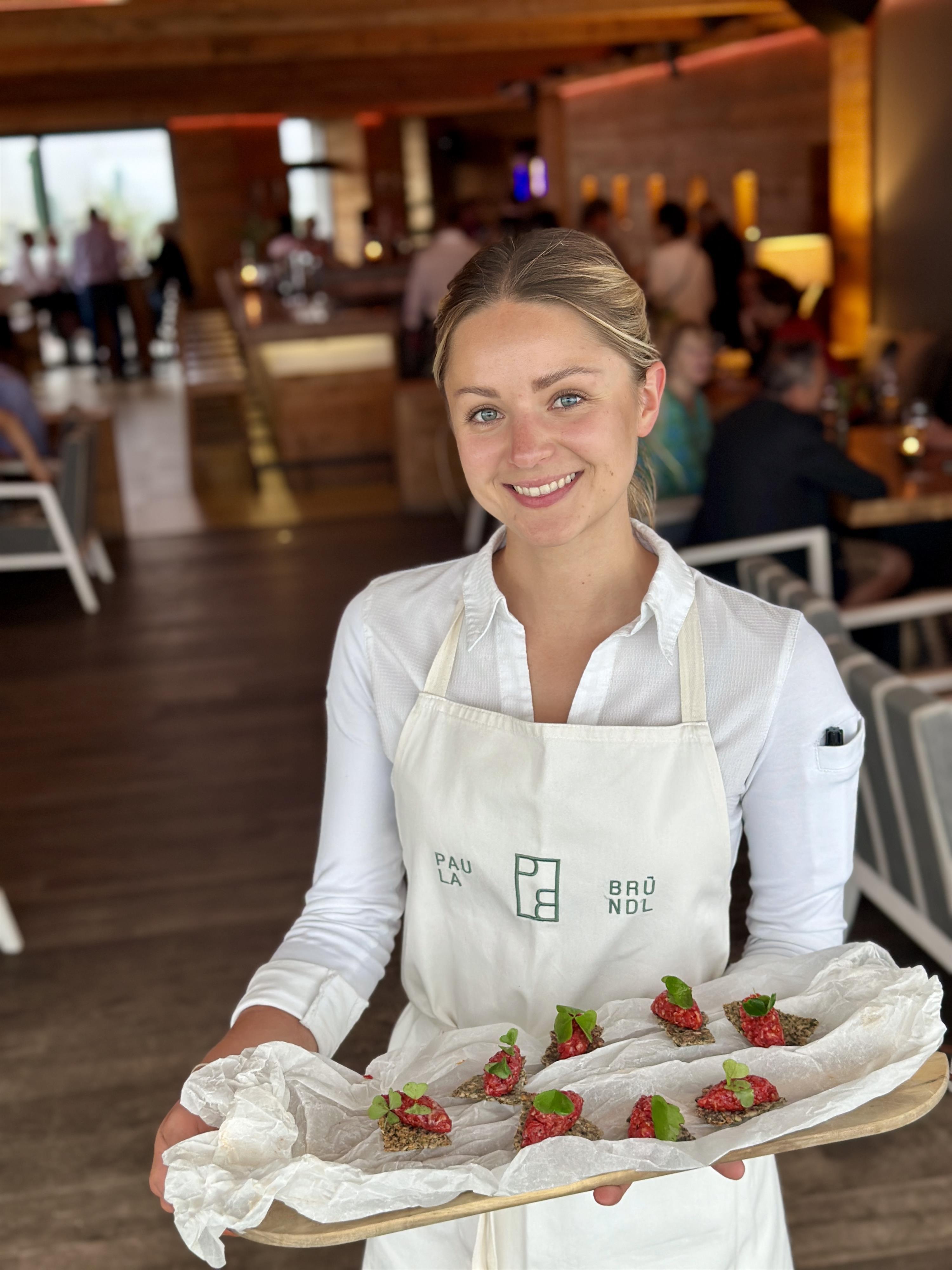 Paula stellt einen variationsreichen Bruch, bestehend aus 5 Gängen zusammen, dazu gibt es ein Heissgetränk.