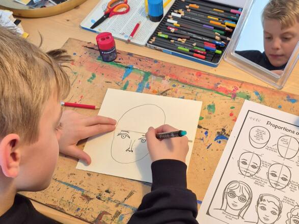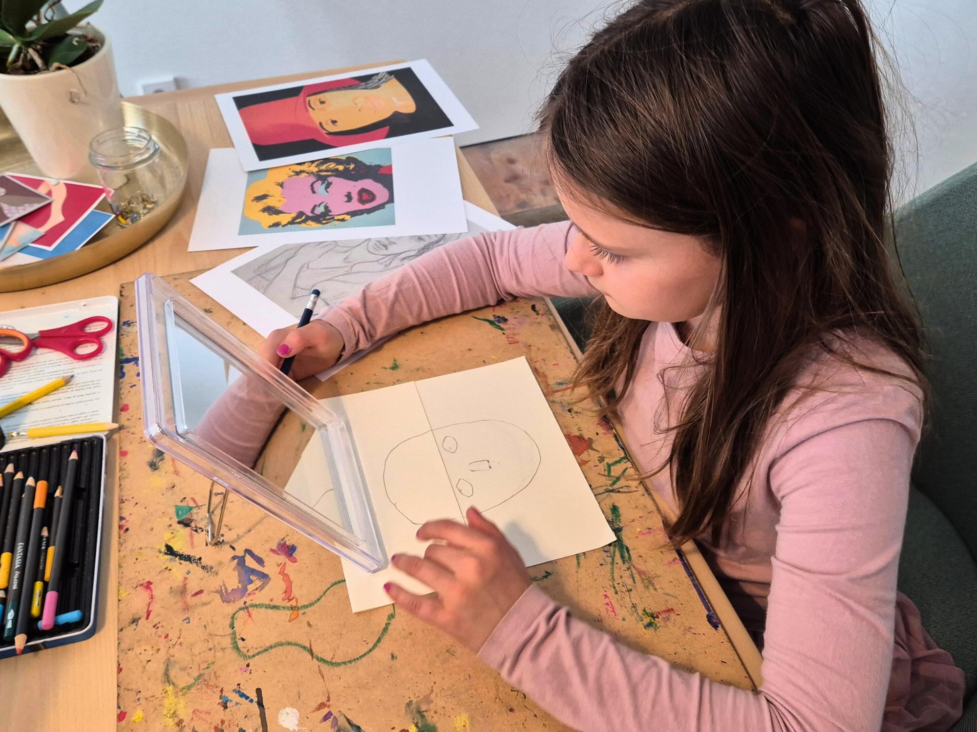 In der anschließenden Kreativwerkstatt entsteht Schritt für Schritt ein eigenes Porträt. Eine einfache Falttechnik eröffnet Raum für Gedanken, Träume, Erinnerungen und Wünsche. So gestaltet jedes Kind ein ganz persönliches Kunstwerk.
