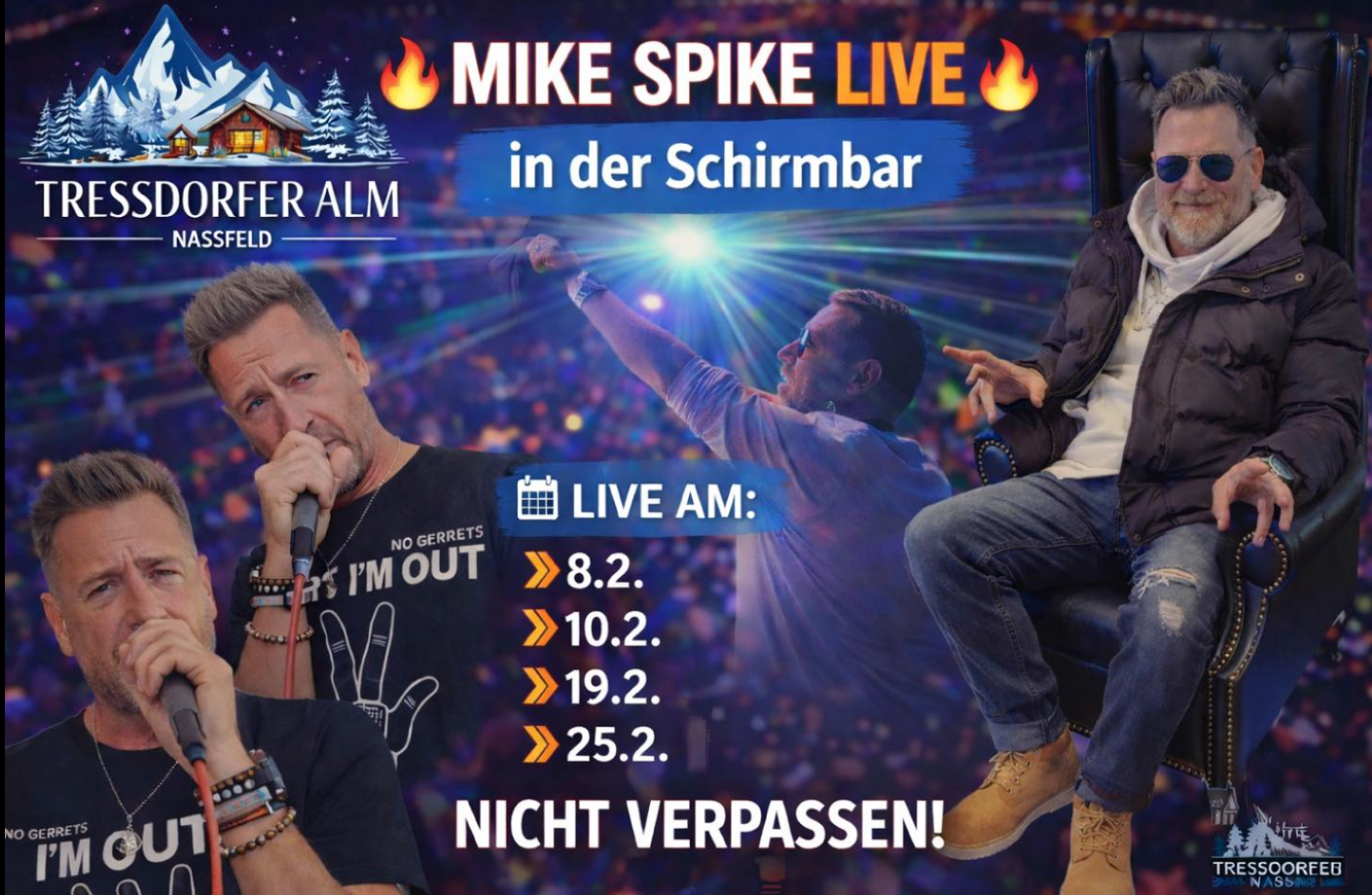 Diesen Februar wird’s bei uns richtig lässig: Mike Spike sorgt an den Terminen 8.2., 10.2., 19.2. und 25.2. den ganzen Tag über für den perfekten Sound.