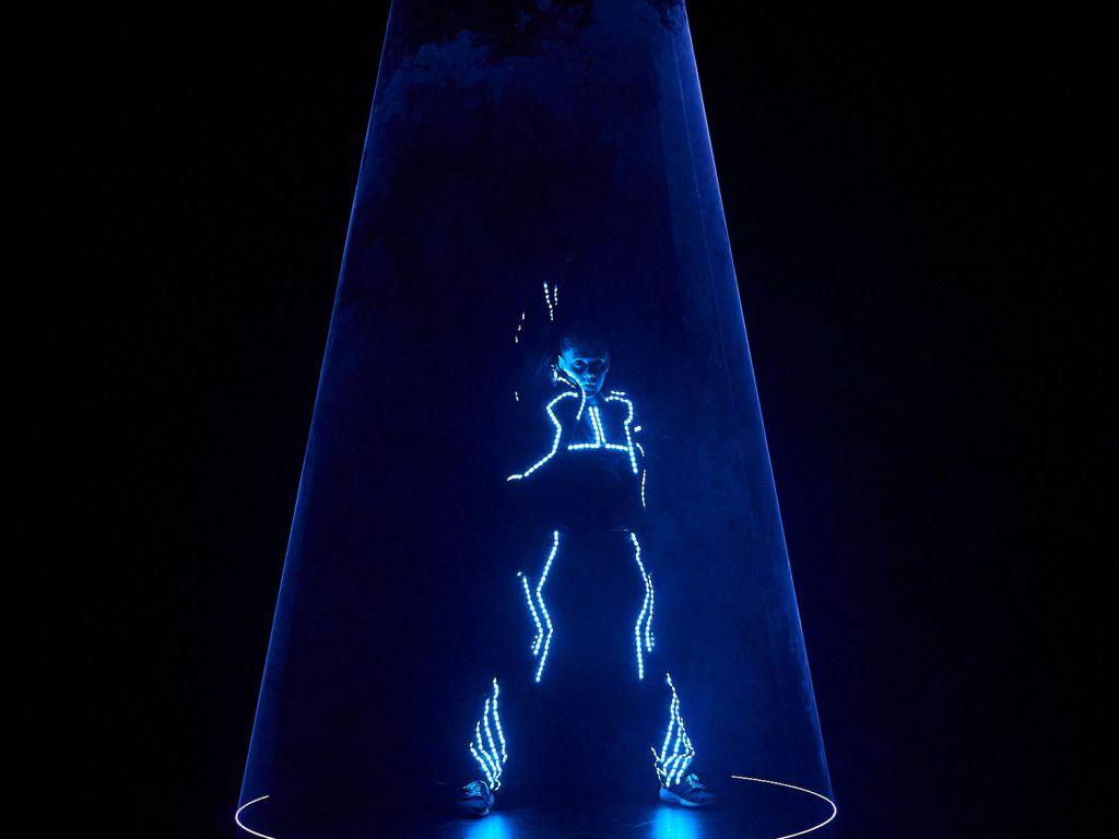 Chris Cross präsentiert eine faszinierende Solo-Performance über Selbstzweifel und Transformation, kombiniert Urban Dance mit beeindruckenden Mapping-Visuals und LED-Technik.