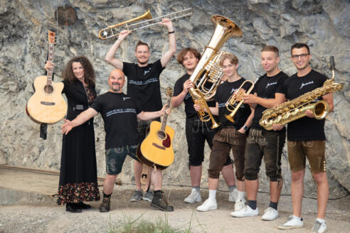 Die Arrangements der Songs ist man ja vom Radio her in voller Besetzung gewöhnt: Zum Austropop-Sound mit E-Gitarre, Schlagzeug, Bass und Keyboard kommen jetzt aber auch noch Top-Musiker aus dem Blasmusik-Sektor dazu. Und musikalische führt bei dieser Besetzung Johannes Bär die Regie – den alle im ganzen Land noch vom HMBC kennen.