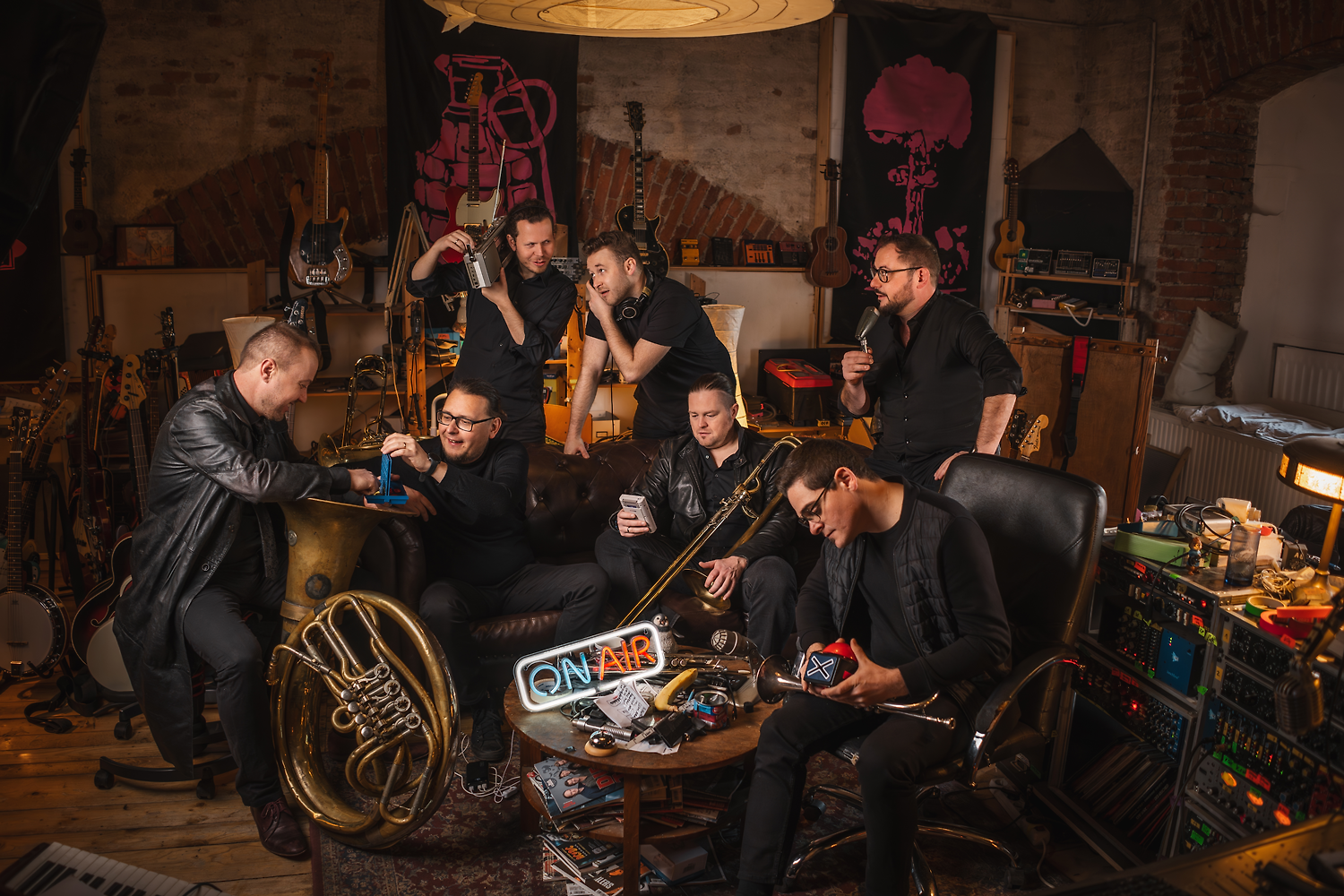 „On Air“ ist eine mitreißende Radioshow zum Anfassen – live, ungeschnitten, gnadenlos virtuos. Zwischen strahlenden Trompetensoli, donnernden Posaunen-Riffs und dem geschmeidigen Groove des Helikons entfaltet sich ein Klangspektrum, das von alpenländischer Tradition über böhmischen Schmäh bis hin zu funkigen Grooves, poppigen Melodien und weltmusikalischen Einflüssen reicht. Dazu gesellen sich freche Slapstick-Einlagen und charmante Moderationen, die nicht nur die Ohren, sondern auch die Lachmuskeln fordern.