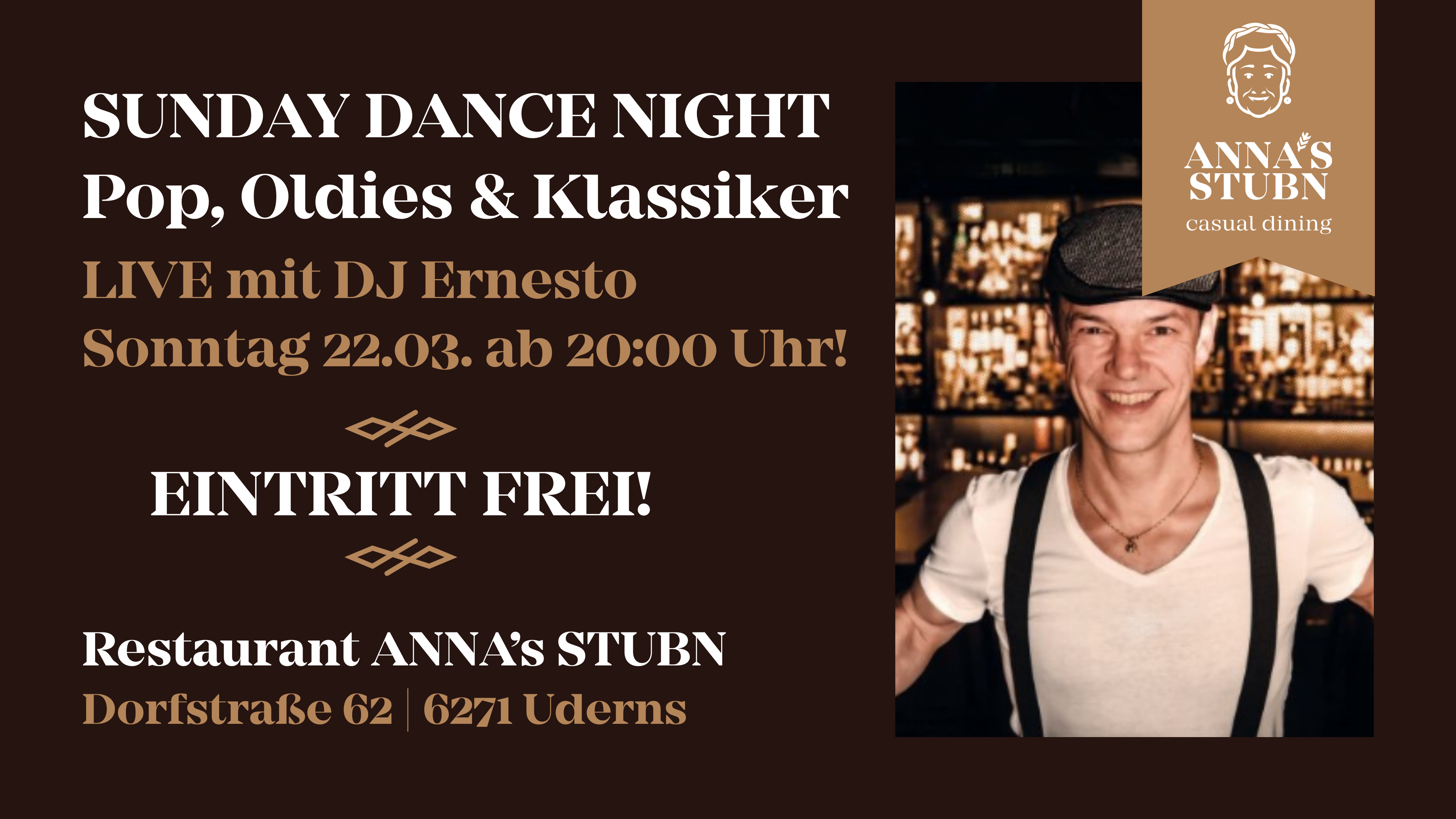 Coole Beats, lässige Stimmung und ein Mix zum Wohlfühlen – so klingt dein perfekter Abend an der Bar! DJ Ernesto bringt mit Pop, Oldies, Klassikern und vielen weiteren Lieblingssongs die Tanzfläche zum Leben. Drink schnappen, zurücklehnen oder einfach lostanzen. Eintritt frei.