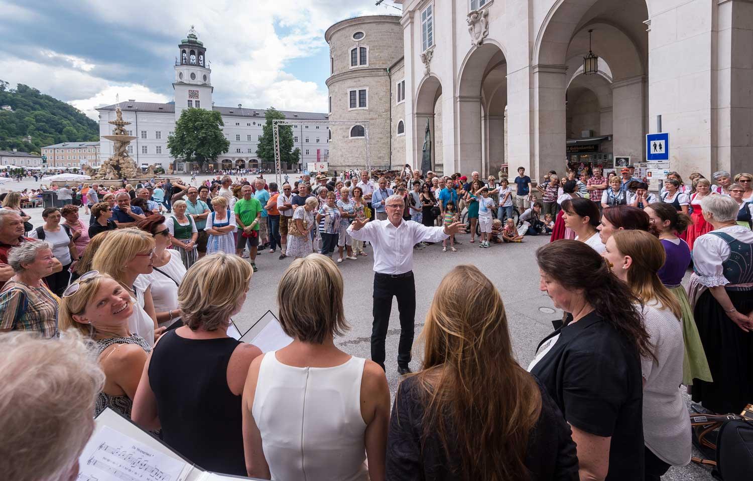 Mehr als 60 Chöre bieten ein butes und abwechslungsreiches Programm: Traditionelles und Modernes, Geistliches und Weltliches, Regionales und Inernationales. Gesungen wird an 18 Schauplätzen verteilt in der Salzburger Altstadt, darunter herrliche Prunksäle, Kinos, Museen und geistliche Orte, wie die Krypta unter dem Dom oder die Katakomben hoch über dem Friedhof von St. Peter.