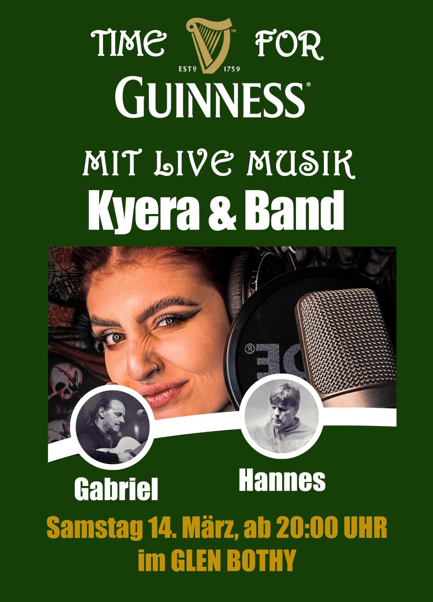 Zu TIME FOR GUINNESS mit Live-Musik von "Kyera & Band" wird beim Glen Bothy eingeladen.